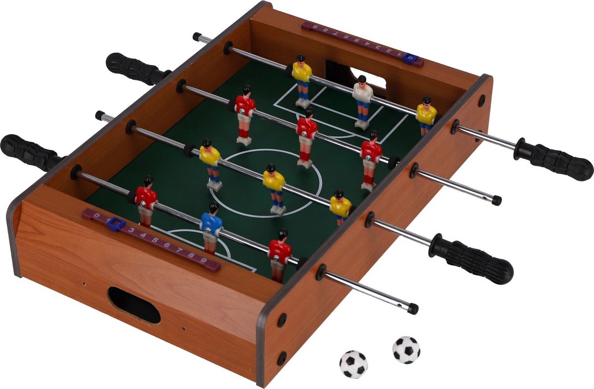 Maak je klaar voor spannende tafelvoetbalwedstrijden met de Voetbaltafel Klein! Deze compacte voetbaltafel is perfect voor liefhebbers van het spel, of je nu thuis bent, op kantoor of onderweg. Met zijn stevige constructie en draagbaar formaat kun je overal genieten van het plezier en de opwinding van tafelvoetbal.