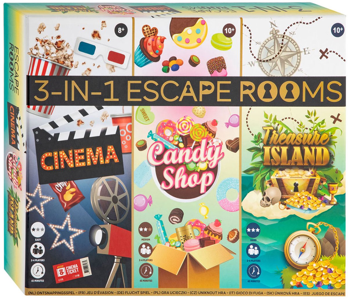 3in1 Escape Rooms Cinema Candy Shop Treasure island Geschikt voor kinderen vanaf 10 jaar lees meer over dit product