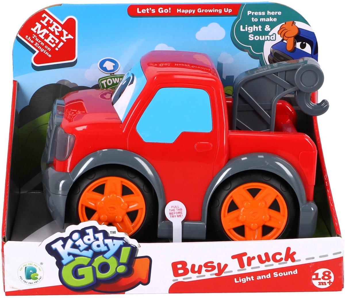 Kiddygo Busy Truck Stoere en schattige rode truck, perfect voor kleine handjes. Met kraan om als sleepwagen te dienen. De auto beschikt over licht- en geluidseffecten, waardoor hij kinderen eindeloos zal vermaken. Geschikt voor kinderen vanaf 18 maanden. lees meer over dit product