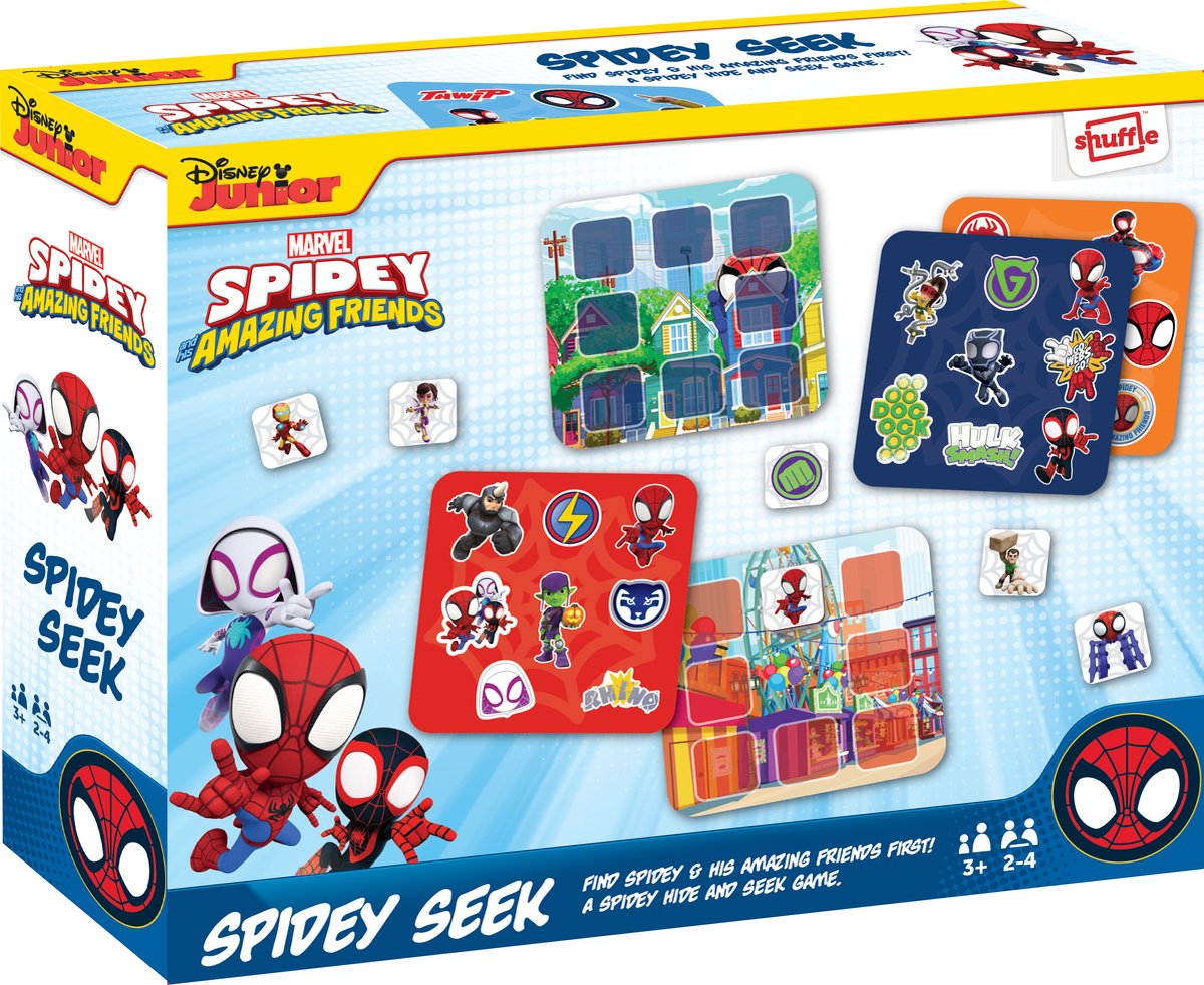 Shuffle Spidey & Amazing Friends - Spidey Seek. Type product: Bordspel, Genre: Matchen, Aanbevolen leeftijd (min): 3 jaar, Speeltijd: 10 min, Familiespel Omschrijving Shuffle Spidey & Amazing Friends - Spidey Seek: Spidey & His Amazing Friends Junior Matchpuzzel - Deze leuke matchpuzzel voor de jongste spelers onder ons. Moedig kleine kinderen aan om het passende plaatje te vinden en stimuleer hun coördinatie en sociale vaardi... lees meer over dit product