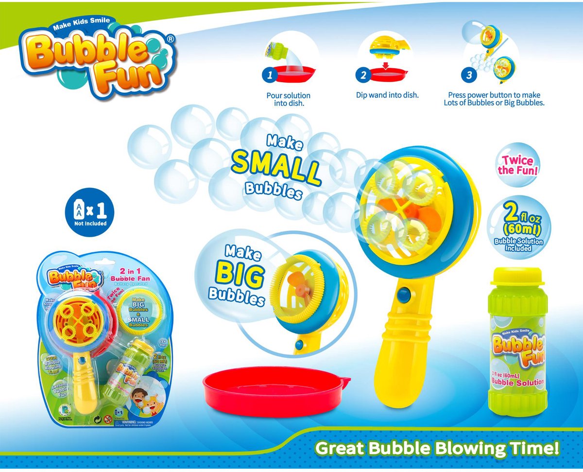 KiddyGo bellenblaas speelgoed fan 2 in 1 multicolor USBMet deze bellenblaas fan van KiddyGo beleef je dubbel zoveel plezier! De kleurrijke fan zorgt niet alleen voor een verfrissend briesje, maar blaast ook in een handomdraai de mooiste bellen. Perfect voor zonnige dagen in de tuin of op het strand, want met dit speelgoed wordt buiten spelen een echt feestje.De bellenblaas fan is eenvoudig te gebruiken en werkt op USB, dus je hoeft nooit zonder te zitten. Dankzij het vrolijke multicolor ontwerp is het een echte blikvanger en geschikt voor jongens én meisjes vanaf 3 jaar. Laat je fantasie de vrije loop en geniet van eindeloos speelplezier!Extra informatie2-in-1 bellenblaas en fan voor extra speelplezierWerkt op USB, dus altijd klaar voor gebruikGeschikt voor kinderen vanaf 3 jaarKleurrijk en vrolijk ontwerp voor jongens en meisjes.