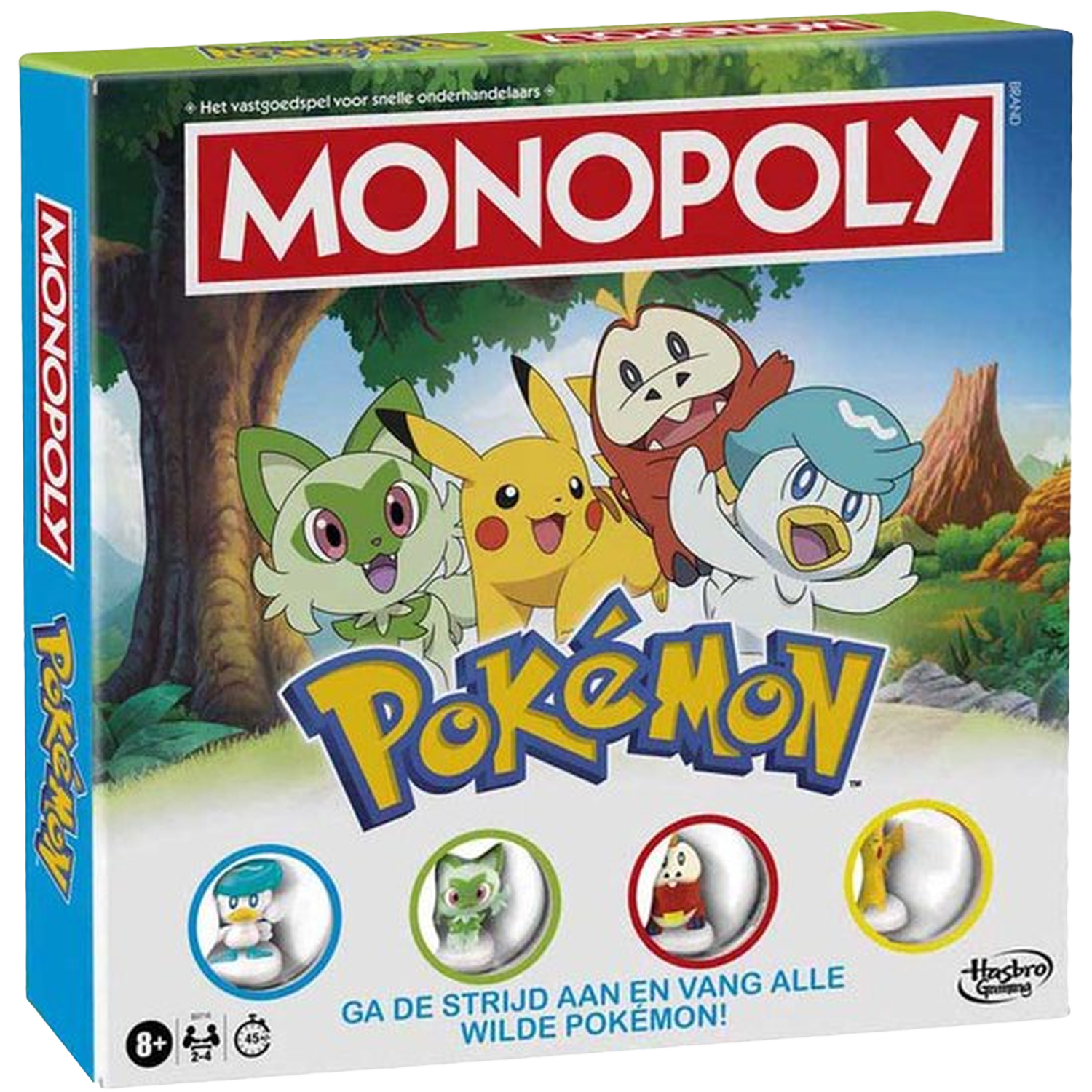 (c)2025 Pokémon/Nintendo/Creatures Inc./GAME FREAK Inc. De namen Hasbro en Monopoly en hun logo's, het kenmerkende ontwerp van het spelbord, de vier hoekvlakken, de naam en het personage Mr. Monopoly, evenals elk van onderscheidende elementen van het bord en de speelstukken zijn handelsmerken van Hasbro, Inc. voor haar beroemde vastgoedspel en toebehoren.