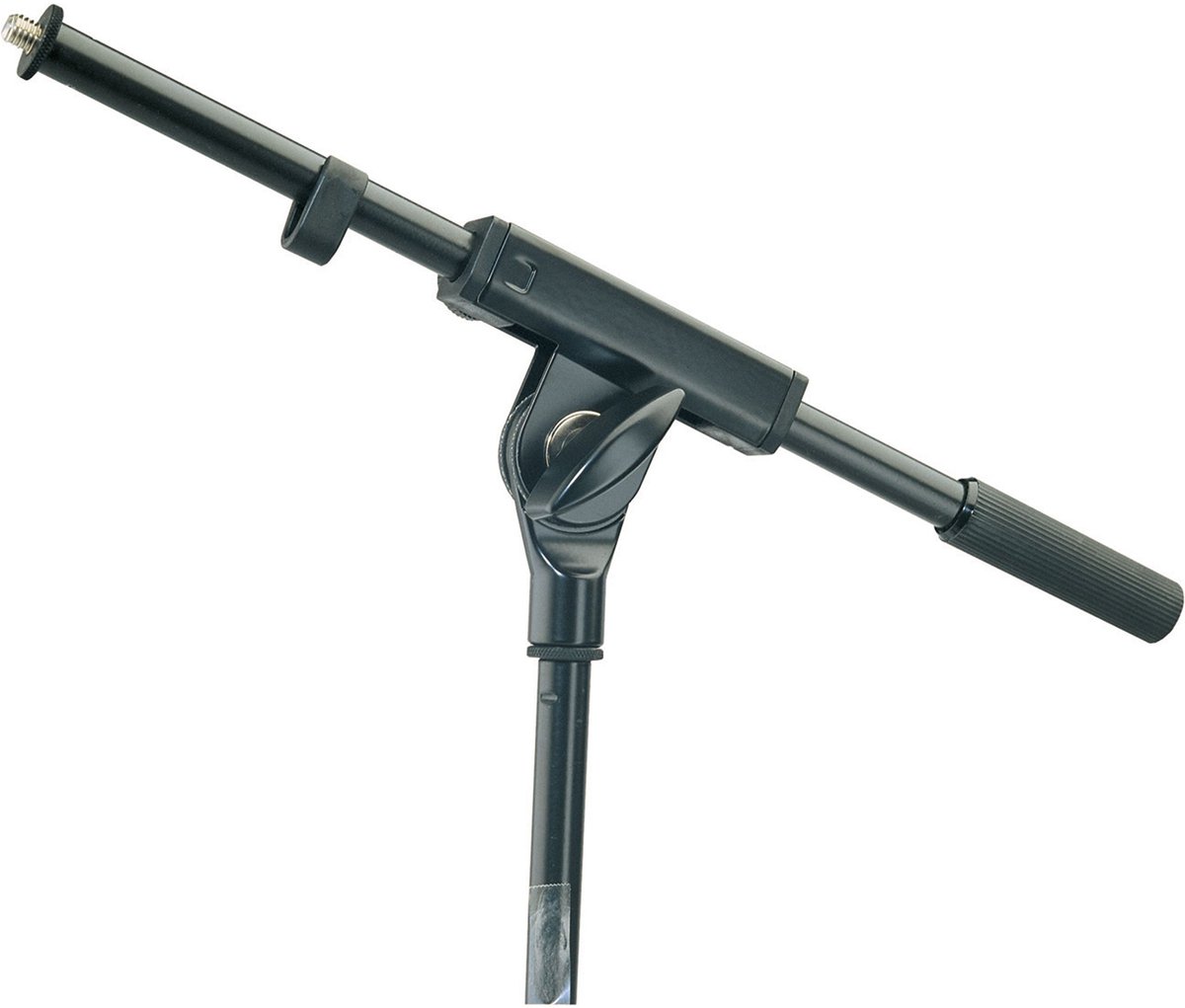 Korte zwenkarm met 3/8" aansluitschroefdraad, tegenschijf en handgreep. Beveiligde klemming met handige vleugelmoer. Geluidsloze verstelbaarheid zonder krassen op het oppervlak van de buis. gewicht: 0,5 kg, SL: 395 mm. MS-ID: REC0002138-000. Fabrikant: . Maximale lengte zwenkarm (mm): 395. Schroefdraad: 3/8". Materiaal: Steel. Kleurbetekenis: Black. Kleur: Schwarz. Weight range (kg): 0 - 2.5. Weight (kg): 0.49. incl. klemmen: Nee. Microfoonstatief accessoires: Ja. Accessoires, Standaards en houders, Standaardaccessoires.