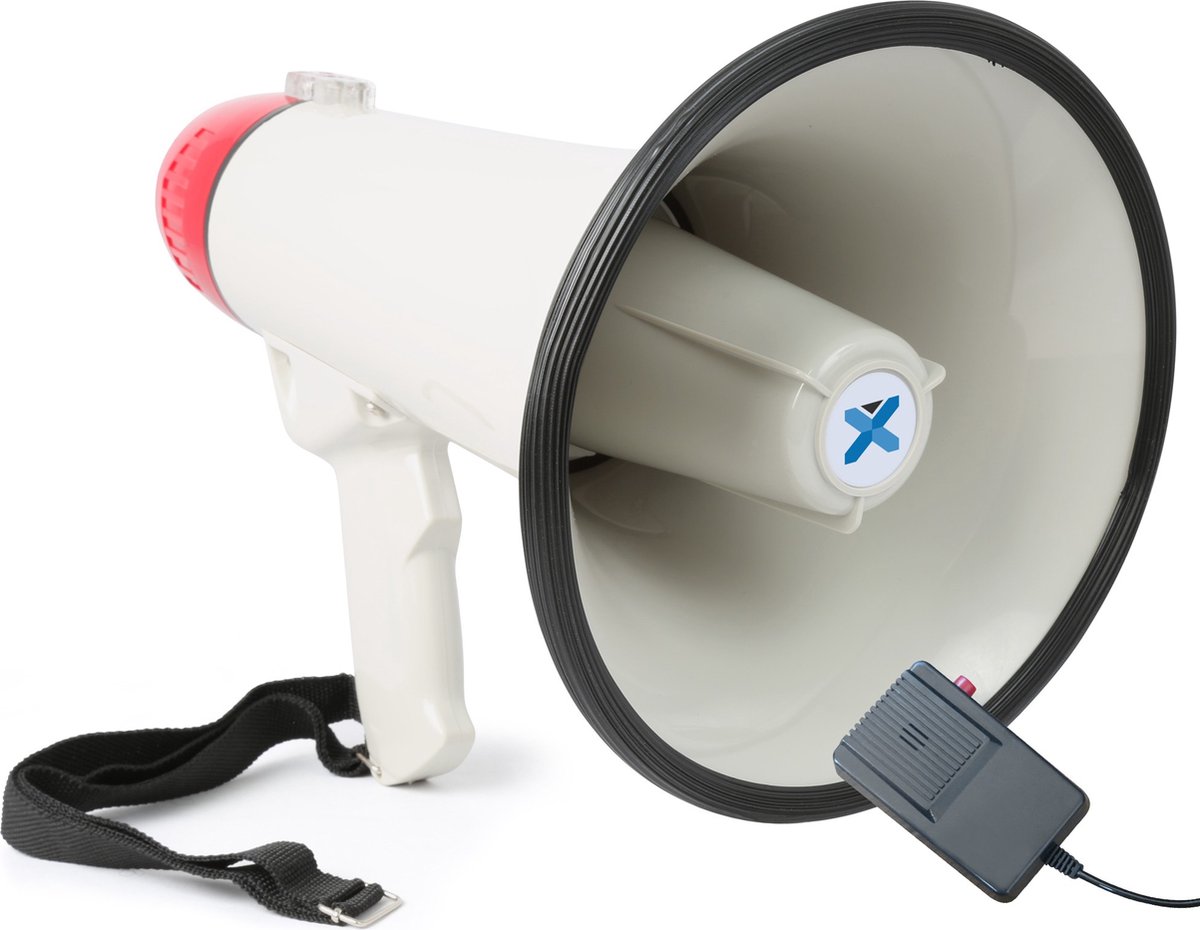 Vonyx MEG040 megafoon 40W met record en sirene functie. De MEG040 is een compacte megafoon maar heeft desondanks wel een vermogen van 40W. De megafoon is voorzien van een afneembare anti-feedback microfoon en verstelbare polsband.