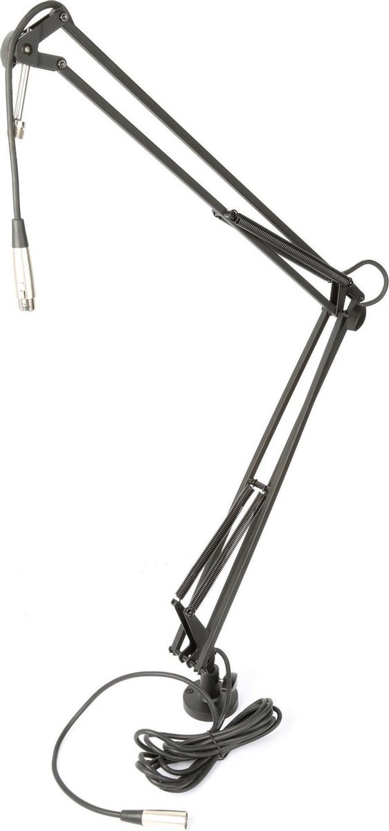 DAP-Audio D8110 broadcasting stand / verstelbare microfoon arm voor gebruik in studio's welke door middel van het meegeleverde grondplaatje eenvoudig met 3 schroeven aan een tafelblad vastgezet kan worden. De arm is eenvoudig in hoogte verstelbaar (max. ±1 meter) zodat de gebruikte microfoon altijd op de juiste hoogte voor de mond geplaatst kan worden. Omdat er een veer als contragewicht wordt gebruikt is het, na het instellen van de hoogte, niet nodig om een knop of iets dergelijks vast te draaien, de DAP-Audio D8110 houdt gewoon vanzelf de hoogte vast. Voor een nette afwerking wordt de D8110 geleverd inclusief een gebalanceerde en afgeschermde XLR microfoonkabel welke in de arm verwerkt is. De lengte van de kabel is totaal zo'n 5 meter waarbij uiteindelijk 3,6 mtr overblijft. De rest van de kabel zit in de arm verwerkt. De DAP-Audio D8110 is voorzien van 5/8 schroefdraad voor de bevestiging van de microfoonhouder of shockmount.