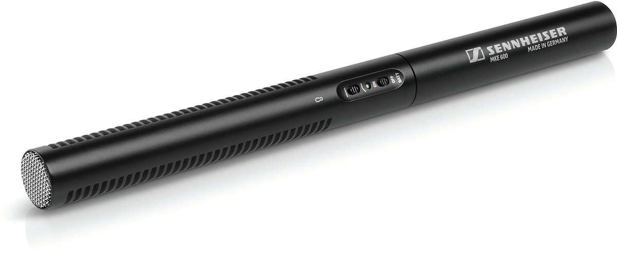De Sennheiser MKE 600 is een condensator shotgun microfoon. Hij heeft een hoge richtingsgevoeligheid waardoor hij geluid oppikt uit de richting waarin de camera wijst en effectief geluiden dempt die van de zijkant en achterkant komen. De microfoon werkt op 48V fantoomvoeding, maar omdat niet alle camera’s deze voeding kunnen leveren, werkt hij ook op een1.5 V AA batterij.