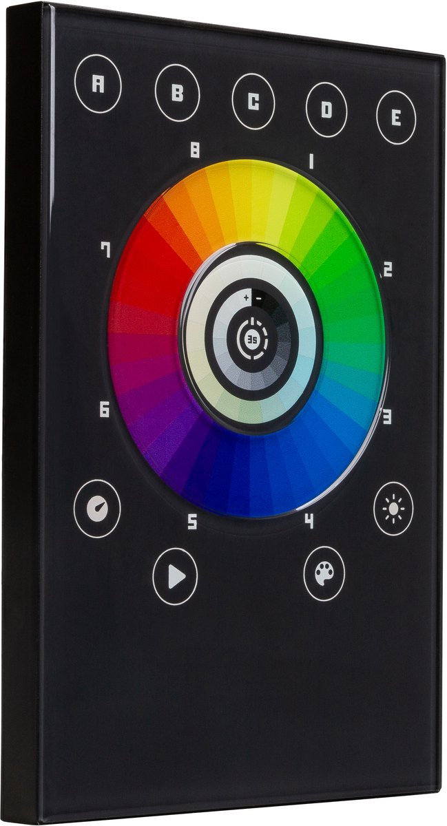 DMX-interface voor wandmontage met een visueel intuïtief aanraakgevoelig glaspaneel. Past in de standaard Europese, Amerikaanse en Aziatische muurbevestigingsdozen. 1024 DMX Kanalen in Stand Alone (4Mb intern geheugen + SD kaart uitbreidingsslot). Directe toegang tot: 5 zones met elk 8 programma's = 40 programma's max. 5 verschillende programma's kunnen gelijktijdig lopen (1 van elke zone) Programma snelheidsregeling Dimmen M... lees meer over dit product
