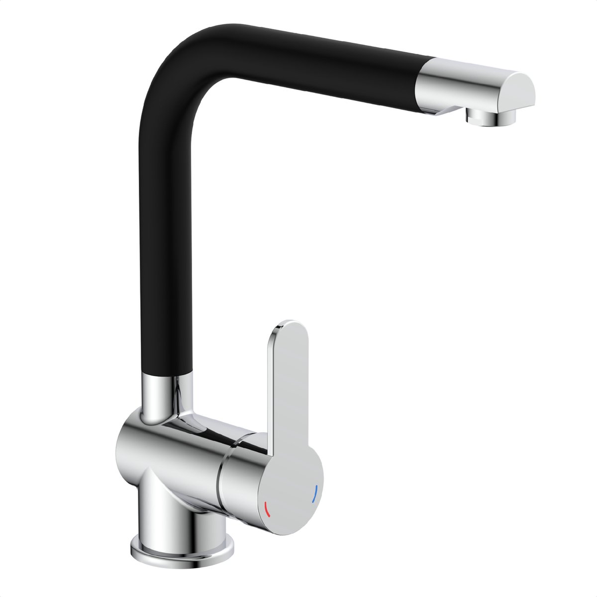 RIO ééngreepsmengkraan keuken met hoge uitloop, chroom/mat zwart• elegante kraan met hoge uitloop en draaibereik 360°• cold-start functie - koud water bij greep in de middelste stand• keramische schijven• geluidsarme, verwisselbare 40 mm cartouche• flexibele metalen aansluitslangen• zijdelingse metalen greep• garantie: 5 jaar lees meer over dit product