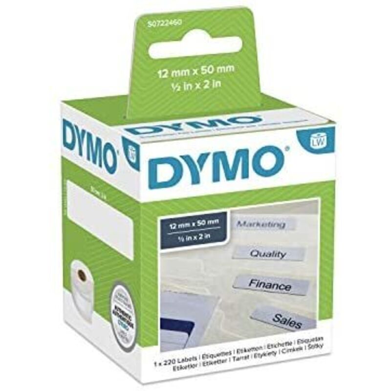 De Dymo LW etiketten voor hangmappen zijn ideaal om hangmappen te labelen. De etiketten hebben een afmeting van 12 x 50 mm en er zitten 220 etiketten op een rol.
