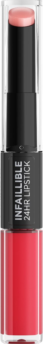 LOral Paris Infallible LippenstiftDeze langhoudende 2-in-1 lipstick is in 2 stappen snel en makkelijk aan te brengen. De effectieve en lipvriendelijke Infallible formule blijft tot 16 uur perfect zitten en geeft niet af. De olie in de balsem zorgt voor een beschermend laagje en gaat droge lippen tegen.