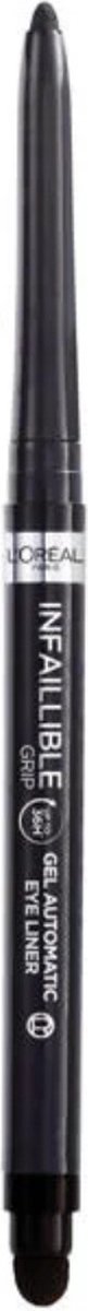 ProductbeschrijvingDe L'Oréal Paris Infaillible 36H Grip Gel Automatic Eyeliner is een opdraaibaar oogpotlood die tot 36 uur blijven zitten.* De kleur loopt niet uit, vervaagt niet en is waterproof.*Consumententest, 100 vrouwen. Productomschrijving:De L'Oréal Paris Infaillible 36H Grip Gel Eyeliner is een opdraaibaar gelpotlood met een handige sponsapplicator. Dankzij de romige textuur die gemakkelijk over de huid glijdt kun je het uitschuifbare potlood comfortabel en precies aanbrengen. De speciale gelformule blijft de hele dag goed zitten. De kleur loopt niet uit, vervaagt niet en is waterproof. Met de handige ingebouwde sponsapplicator creëer je gemakkelijk een smokey eye look. Het potlood kan geslepen worden met de ingebouwde puntenslijper die aan de achterkant van de sponsapplicator vastzit. Bulletpoints:• Opdraaibaar gelpotlood• Waterproof & vlekbestendig • Voor groter lijkende ogen• Tot 36 uur lanhoudend* consumententest, 100 vrouwen• Geschikt voor gevoelige ogen en dragers van contactlenzen GebruiksaanwijzingStap 1: Breng het oogpotlood aan door een lijn te trekken boven de wimperaanzet waarbij je de eyeliner vanuit de binnenkant van het oog naar de buitenkant laat glijden. Stap 2: Voor een extra intense look blend met de sponsapplicator IngrediëntenDimethicone • Trimethylsiloxysilicate • Polyethylene • Acrylates/Stearyl Acrylate/Dimethicone Methacrylate Copolymer • Synthetic Fluorphlogopite • Silica • Ozokerite • Cellulose • Polyisobutene • Alumina • Kaolin • Disteardimonium Hectorite • Pentaerythrityl Tetra-Di-T-Butyl Hydroxyhydrocinnamate • Tin Oxide • Propylene Carbonate • Polyglyceryl-3 Polydimethylsiloxyethyl Dimethicone • Maltodextrin “Houd er rekening mee dat de ingrediëntenlijsten voor producten van ons merk regelmatig worden bijgewerkt. Raadpleeg de ingrediëntenlijst op de productverpakking voor de meest actuele lijst met ingrediënten om er zeker van te zijn dat deze geschikt is voor uw persoonlijk gebruik. " (Voor producten die in de winkel worden bijgevuld, moet de meest actuele ingrediëntenlijst worden verkregen op het verkooppunt nadat het product opnieuw is gevuld).