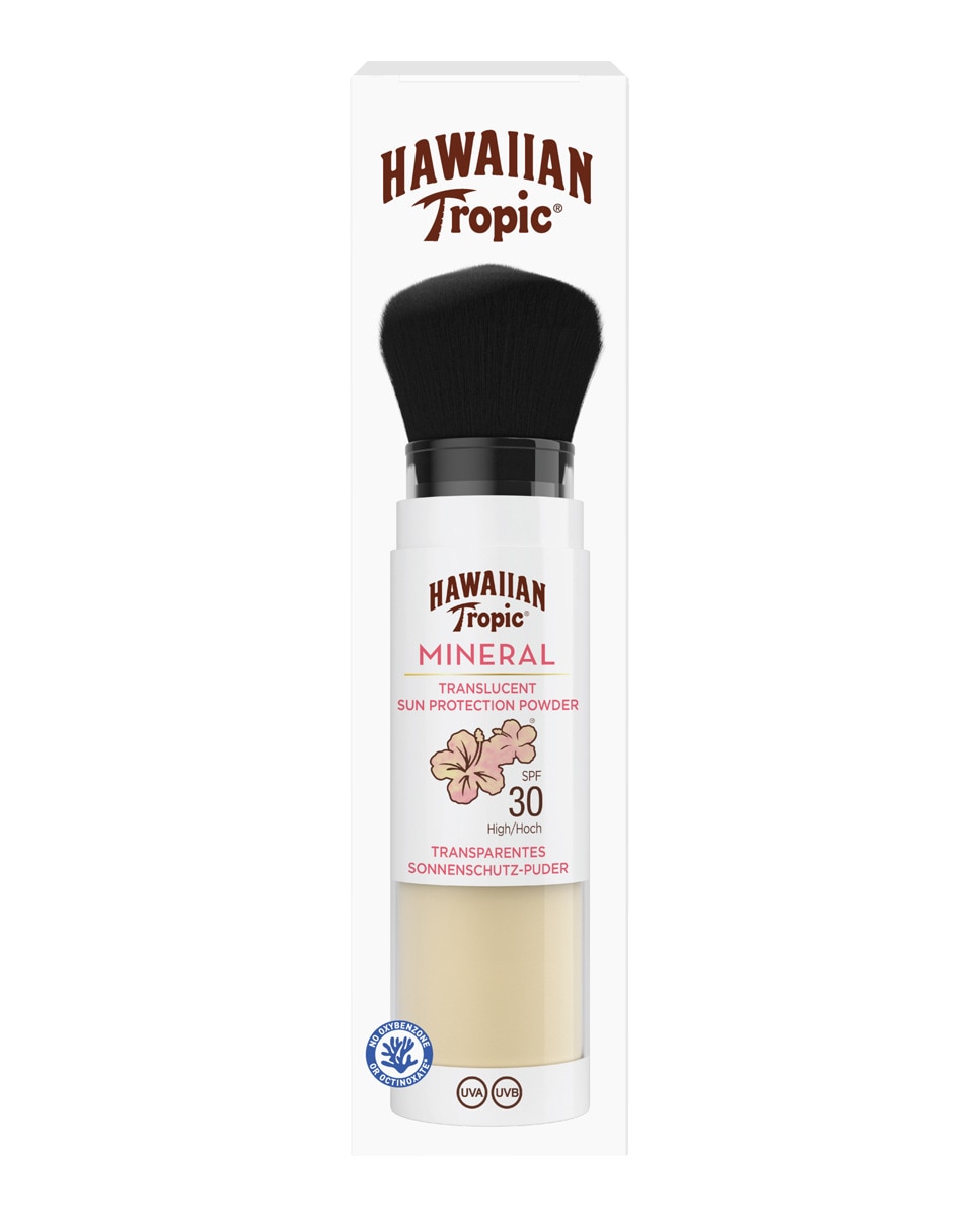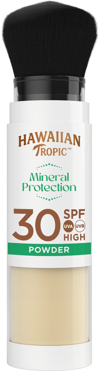 Onze handige en praktische Mineral Protection Powder Brush: de dagelijkse bescherming die je nodig hebt en je look verbetert. Dit superlichte poeder bevat 100% zinkoxidefilters en biedt een hoge UVA- en UVB-bescherming. Het is gemaakt met natuurlijke zeemineralen die de overtollige olie op je gezicht opnemen en de draagbare kwast is makkelijk in gebruik. Het poeder past perfect in je dagelijkse beautyroutine. Je kunt het gewoon zo op je gezicht aanbrengen, onder je make-up dragen, of zelfs over je make-up om die te fixeren. De doorzichtige formule past bij de meeste huidtinten, geeft je een mooie, matte finish en dankzij de fijne tropische geur krijg je zin om eropuit te gaan en onvergetelijke herinneringen te maken. Hawaiian Tropic. Beschermt je huid, inspireert met geur. Dit is jouw glow-moment!