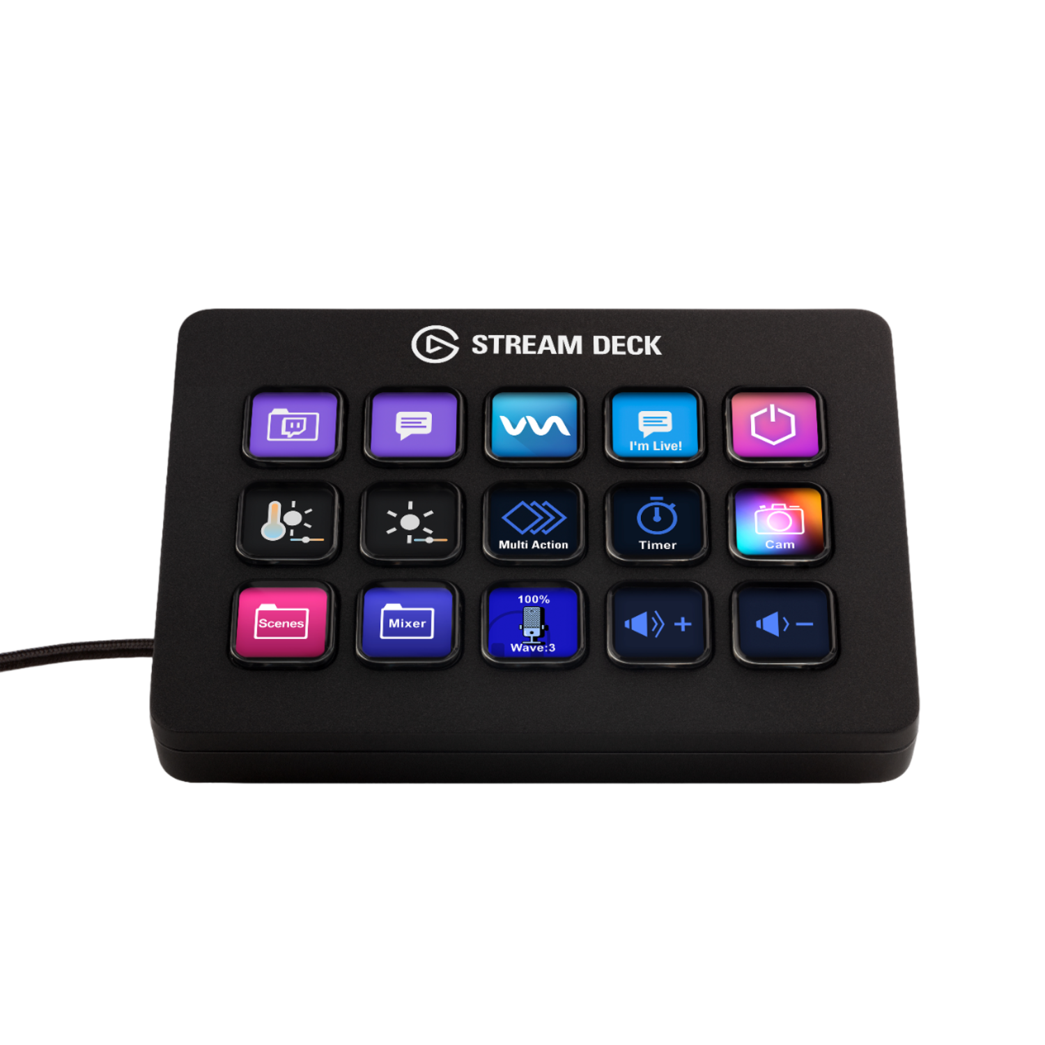 Het Elgato Stream Deck MK.2 biedt je 15 LCD-toetsen om je apps en tools te bedienen. Start acties, open sociale berichten, stel audio in, speel geluidsfragmenten af, schakel lampen in en nog veel meer. Krijg visuele feedback die je opdrachten bevestigt. Laat Stream Deck automatisch toetsconfiguraties wisselen als je van de ene app naar de andere gaat. Het is de ultieme hack voor je workflow en je kunt het volledig aanpassen. Personaliseer je Stream Deck met aangepaste pictogrammen, screensavers en steeds meer keuze uit verwisselbare voorpanelen. Gebruik de app om gemakkelijk toetsen te configureren en ga naar de Stream Deck Store voor plug-ins voor apps, pictogrammensets, duizenden rechtenvrije nummers, effecten en meer.