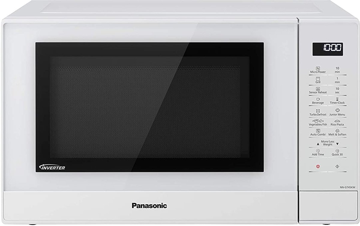 magnetrongrill 31l 1000w wit - panasonic - nn-gt45kwsug - Panasonic NN-GT45KWSUG Magnetrongrill met invertertechnologie garandeert een constante en gelijkmatige bereiding van voedsel. Dubbel koken: dankzij de invertertechnologie kookt de kracht van de magnetron voedsel snel, terwijl de grill zorgt voor een bruin en knapperig koken. Dit alles gebeurt tegelijkertijd, wat resulteert in een snellere bereiding.1000W Fast 30 Functie: Met deze functie kunt u 30 seconden snel en eenvoudig koken zonder dat u extra instellingen hoeft te selecteren. Elke druk op de knop stelt het in voor 30 seconden, en de set-up van 5 minuten is mogelijk. Eco en heldere lamp: LED-verlichting maakt het interieur van de oven helderder, dus het is gemakkelijker om de omstandigheden te controleren bij The Evolution of Inverter Technology van Panasonic: traditionele modellen magnetrons bieden slechts één vermogensniveau: aan / uit. De Panasonic Inverter-technologie zorgt voor continu kookvermogen, zodat de smaak en textuur van je favoriete voedsel intact blijft. Inverter Turbo Defrost: Panasonic heeft met succes Turbo Defrost geüpgraded, waardoor je voedsel nog sneller kunt ontdooien dan de oudere Panasonic Auto Defrost. Panasonic Inverter Turbo Defrost-technologie is een geavanceerd microgolfvolgordesysteem dat de continue stroomafgiftefunctie van de inverter Family-keuken gebruikt: De NN-GT45KWSUG met een capaciteit van 31 L, is samengesteld uit een glazen draaiplateau van 34 cm. Gebruik grotere gerechten om voor het hele gezin te koken Er is geen leeftijd om gezond te eten: zelfs de meest veeleisende fijnproevers zullen blij zijn met het Junior-menu. Met zijn 3 automatische programma's (groentepuree, fruitcompotes, pap) is het bereiden van maaltijden kinderspel. Een magnetron die roostert voor krokantere resultaten: de kwartsgrill van 1100 W gratineert uw maaltijden. Favoriete recepten zoals pizza's, quiches en groenten. Verschillende automatische grillmenu's zorgen elke dag voor knapperige resultaten Een nieuwe manier van koken: ontdek het plezier van vers en gezond koken met de Panasonic microgolf-invertertechnologie. Dankzij de nauwkeurige vermogensregeling zijn gerechten in een mum van tijd gelijkmatig en klaar. - Producttype: Magnetrongrill.