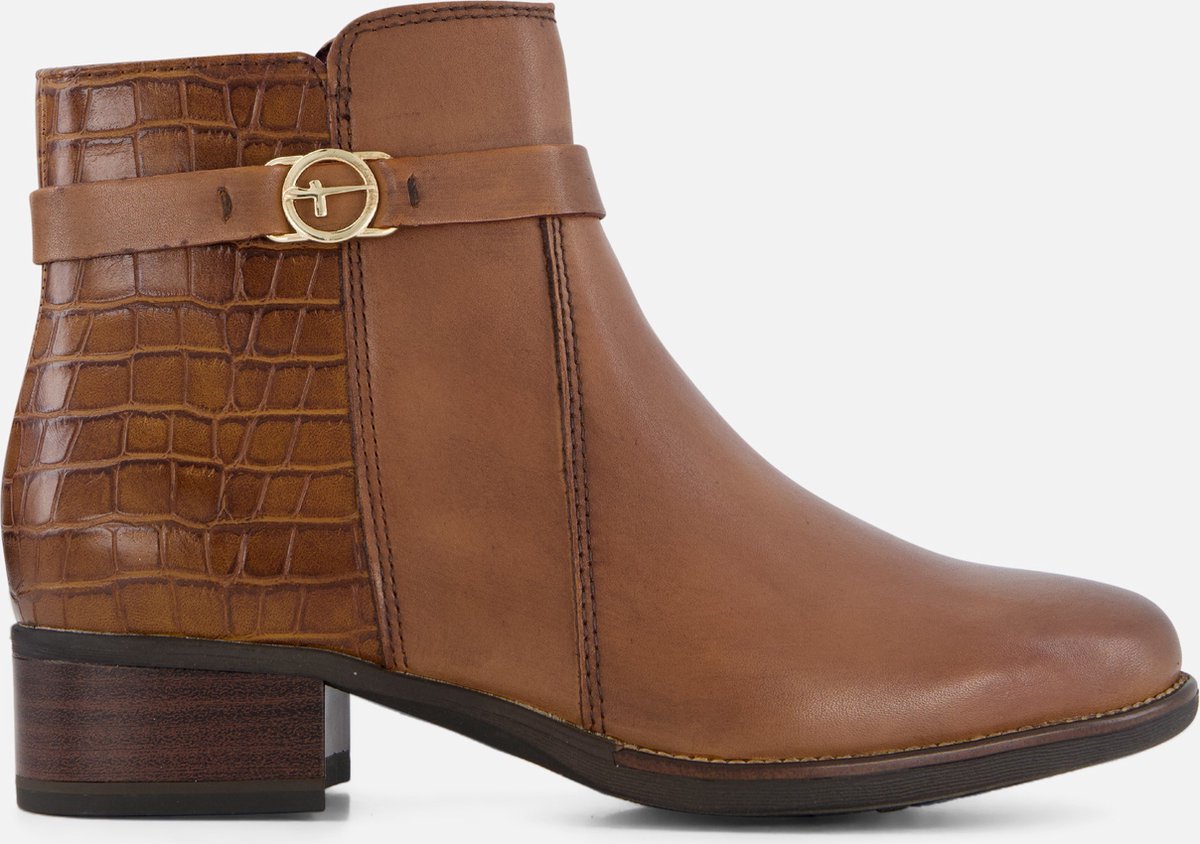 Deze Tamaris enkellaarsjes in de kleur cognac zijn gemaakt van leer. De voering en comfortabele binnenzool zijn van schapenwol. De laarsjes zijn voorzien van Anti-Shokk en een touch-it binnenzool. De antislipzool is gemaakt van rubber en heeft een dikte van 2 centimeter.
