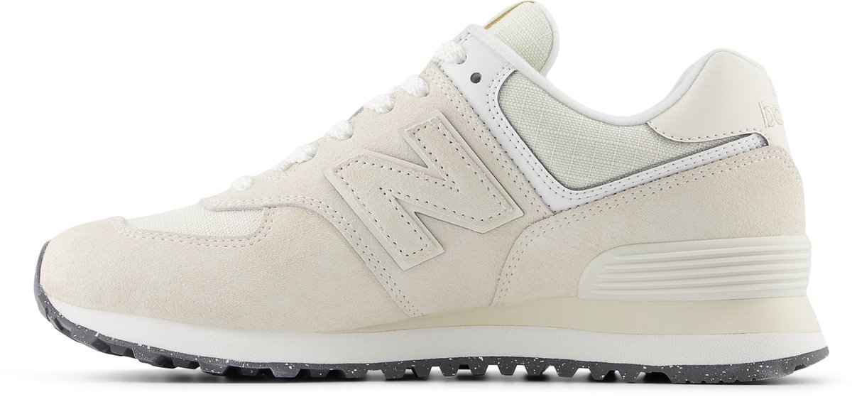 'The most New Balance shoe ever' zegt genoeg, toch? Nee, eigenlijk niet. De 574 is misschien wel ons meest onwaarschijnlijke icoon. De 574 was gemaakt om een betrouwbare schoen te zijn die veel verschillende dingen goed kon doen in plaats van een platform voor revolutionaire technologie of een showcase van eersteklas materialen. Deze bescheiden, pretentieloze veelzijdigheid is precies wat de 574 in de rang van de allergrootsten heeft gebracht. Als hybride weg-/trailontwerp gebouwd op een bredere leest dan de smalle racesilhouetten van de vorige generatie, bood de 574 een unieke veelzijdige mix van nieuw, anders, ongecompliceerd, robuust, duurzaam en comfortabel die over de hele wereld werd overgenomen. Dat is waarom vandaag de dag de 574 gelijkstaat aan de grens opzoeken in New Balance-stijl. De schoen is immens populair.