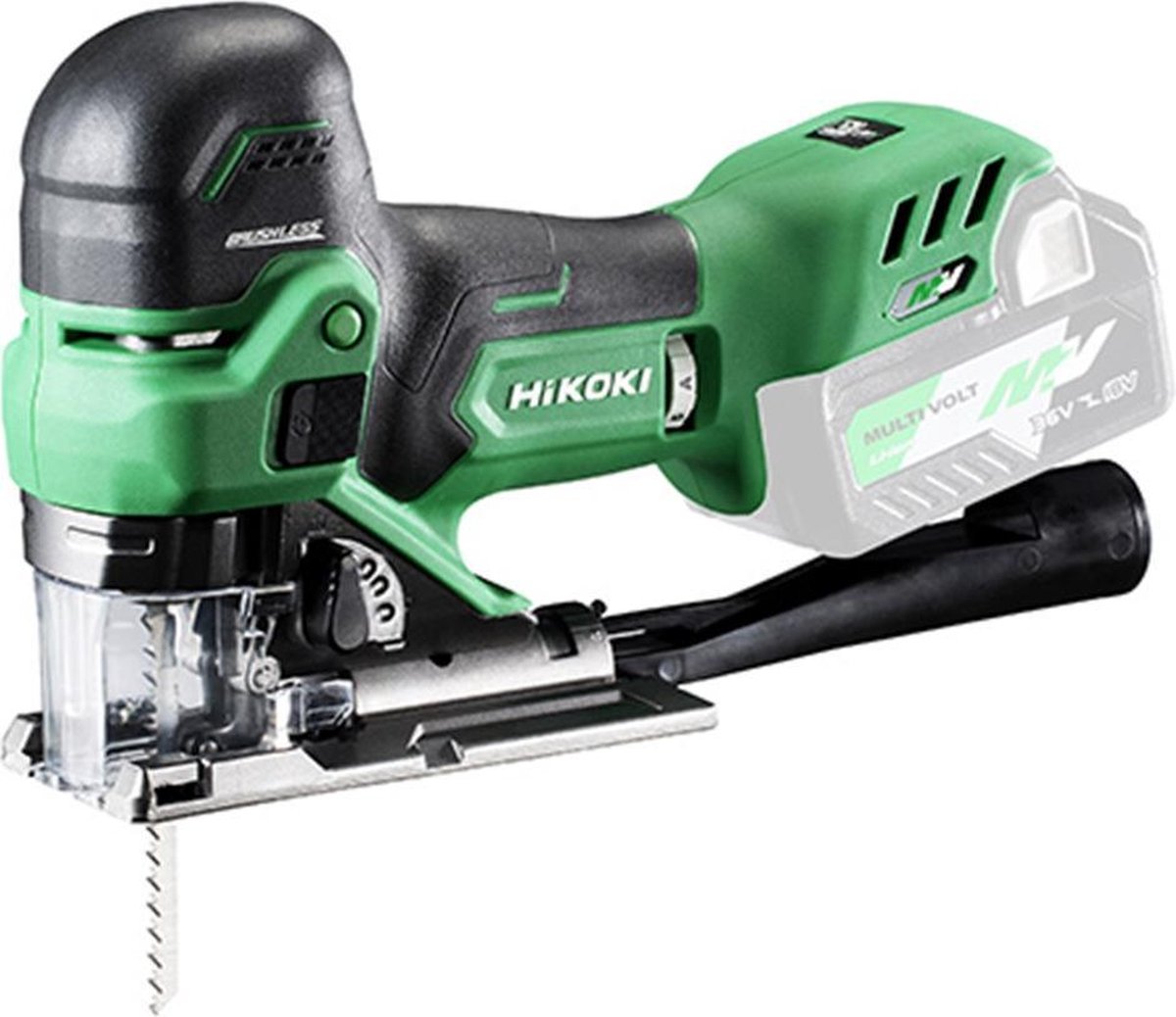 Nieuwe Hikoki accu decoupeerzaagmachine met multivolt accu technologie (36 Volt). Deze machine heeft de hoogste zaagsnelheid in zijn klasse. Daarnaast beschikt deze machine over een automatische modus waar hij de zaagsnelheid aanpast op het materiaal dat gezaagd wordt. De schakelaar is zowel links als rechts bedienbaar. Voor beter zicht op het zaagwerk beschikt de machine over een LED-verlichting en blaasfunctie. De machine is ook aan te sluiten op een stofzuiger met de meegeleverde stofzuigadapter.