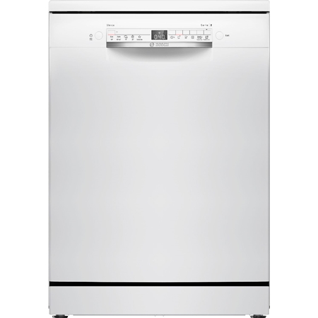 De Bosch SMS2HTW02E Serie 2 is een vrijstaande vaatwasser van 60 cm breed in de kleur wit. DEze vrijstaande vaatwasser met Energielabel D beschikt over Home Connect om op ieder moment de mogelijkheid om het geluid te reduceren via de Home Connect App.