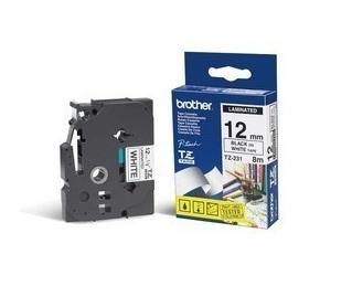 Dit is zwart op witte gelamineerd tape met een maat van 12mm en een tape lengte van 8m