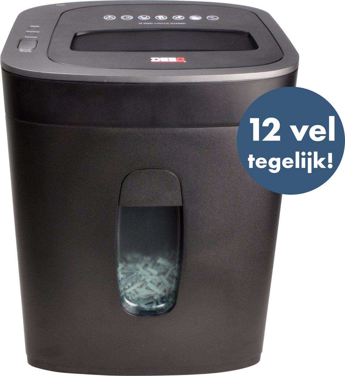 DESQ® Papierversnipperaar - 12 vel - 4 x33 mm - P4 - 19 Liter opvangbak - Slechts 60dB - Ook creditcards - AVG-proof