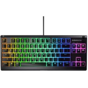 Het SteelSeries Apex 3 TKL gaming toetsenbord is ontworpen in de vormfactor die de voorkeur heeft onder esports-profs en zit boordevol geavanceerde gametechnologie van SteelSeries, waardoor je een voorsprong hebt op de concurrentie. Pro's kiezen voor TKL-toetsenborden omdat het weglaten van het numpad met tien toetsen meer ruimte biedt voor grote muistoetsen en voor een betere ergonomie tijdens het gamen. SteelSeries Whisper-Quiet gaming switches zijn ontworpen met duurzaam, wrijvingsarm materiaal voor meer dan 20 miljoen stille toetsaanslagen. Daarnaast is de Apex 3 TKL stof- en waterbestendig (IP32) en extra duurzaam gebouwd om schade door vloeistoffen en stofdeeltjes te voorkomen, zodat je kan blijven spelen, wat er ook met jouw toetsenbord gebeurt. Een klikbare volumeregelaar en mediatoetsen helpen je jouw instellingen gemakkelijk en direct aan te passen, in plaats van toepassingen en instellingen te moeten doorzoeken. Helderheid aanpassen, terugspoelen, overslaan of pauzeren allemaal met één druk op de knop. Gebruik de SteelSeries software om briljante lichteffecten te configureren bij specifieke spelgebeurtenissen. Of gebruik de macro-editor om eenvoudig geavanceerde toetscombinaties uit te voeren met een druk op de knop.