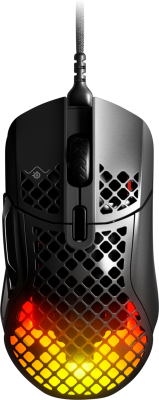 De ultralichte, zwarte Aerox 5 gaming muis van SteelSeries combineert een licht gewicht van slechts 66 g met een ultramodern ergonomisch ontwerp en topsnelheid voor ongekend gameplezier. Met zijn negen programmeerbare knoppen, waaronder vijf zijknoppen en een speciaal ontworpen switches, heb je alle macro's altijd bij de hand om in luttele seconden spelveranderende acties uit te voeren. De IP54-gecertificeerde AquaBarrier-technologie beschermt het interne circuit van de Aerox 5 tegen alle omgevingselementen. De TrueMove Air Sensor biedt ongeëvenaarde precisie, 1:1-tracking en absolute controle dankzij tot 18.000 dpi, 400 ips, 40 G versnelling en tilt-tracking. De Aerox 5 is ook voorzien van zuivere PTFE-glijvoetjes en een afneembare Super Mesh USB-C-kabel voor soepele en precieze muisbewegingen. Alle aanpassingen kunnen gemakkelijk worden gemaakt via de SteelSeries Engine en de 3-zone RGB verlichting kan worden aangepast aan gebeurtenissen in de game of worden gematcht met andere SteelSeries producten.