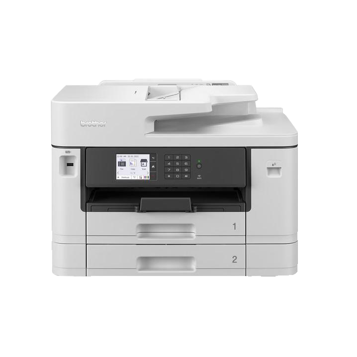 De MFC-J5740DW levert betrouwbare 4-in-1-functionaliteit voor het kantoor aan huis of het kleine kantoor. Met vier inktpatronen is deze multifunctionele printer zeer efficiënt en heeft hij een groot bereik, met snelheden tot 35 pagina's afdrukken in zwart en 32 pagina's afdrukken in kleur. Naast afdrukken tot A3-formaat, is er een scanner met flatbedeenheid en duplexinvoer voor 50 vel, en een kopieerapparaat aanwezig. De MFC-J5740DW heeft Wi-Fi-, LAN- en USB-aansluitmogelijkheden en ondersteunt ook rechtstreeks printen vanaf mobiele apparaten met iOS of Android. De ingebouwde faxinterface maakt van deze machine ook een fax-hub. Dit multifunctionele toestel heeft een aanraakscherm als bedieningseenheid aan de voorzijde, dat is gecombineerd met functietoetsen en een numeriek toetsenbord. Het heeft twee papierlades met elk een capaciteit van 250 vel.