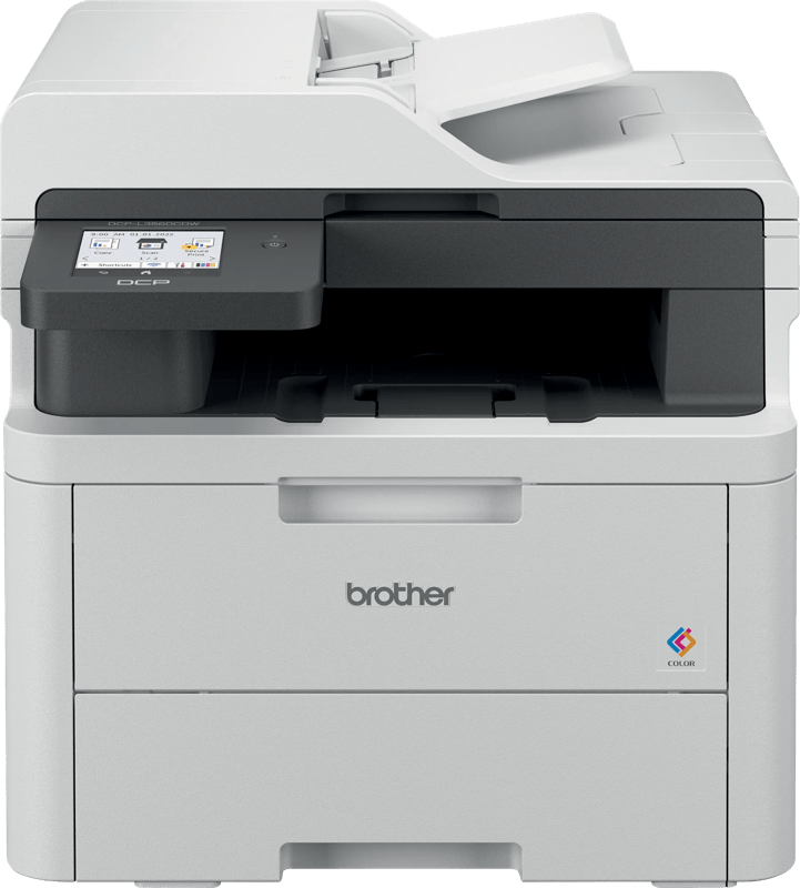 Efficiënt printen in kleur, een groot aantal functies, kleine voetafdruk: de DCP-L3560CDW is een krachtige 3-in-1 multifunctionele printer voor kleine kantoren of het kantoor aan huis. Hij print tot 26 pagina's per minuut met LED-technologie en heeft ook een scanner met een 50 vel invoer en een kopieerfunctie. De DCP-L3560CDW kan in een netwerk worden opgenomen via LAN en WLAN en ondersteunt WiFi-direct printen voor direct printen vanaf mobiele apparaten met iOS of Android. Een automatische duplexfunctie maakt dubbelzijdig afdrukken mogelijk met een snelheid tot 10 pagina's per minuut. Een stille modus vermindert indien nodig het bedrijfsgeluid, terwijl de tonerbesparende modus zorgt voor een langer verbruiksbereik.