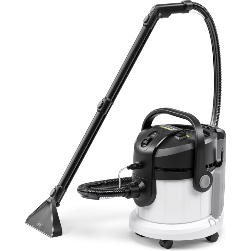 Een ergonomisch design gecombineerd met multifunctionaliteit voor een diep reinigende en hygiënische reiniging tot in de vezels van veel textieloppervlakken, dat biedt de sproei-extractiereiniger SE 4 van Kärcher. De Kärcher sproei-extractietechnologie levert de beste reinigingsresultaten: vers leidingwater en de Kärcher Carpet Cleaner RM 519 worden onder druk diep in de textielvezels gespoten en vervolgens samen met het losgemaakte vuil weer opgezogen - ideaal voor gezinnen, mensen met allergieën en huishoudens met huisdieren. Dit is een multifunctioneel 3-in-1 apparaat en werkt tevens als volwaardige nat- en droogstofzuiger. De grote doorzichtige 4 liter verswatertank is stootvast en afneembaar, waardoor het gemakkelijk te vullen en te legen is. Het vuile water dat wordt opgezogen, wordt opgevangen in de container. De 3-in-1 draaggreep is ontworpen om het dragen, openen, sluiten en legen van de container probleemloos te maken. De meegeleverde accessoires berg je netjes op op het apparaat zelf. Het apparaat is na gebruik eenvoudig schoon te maken, waardoor een lange levensduur van het product wordt gegarandeerd.
