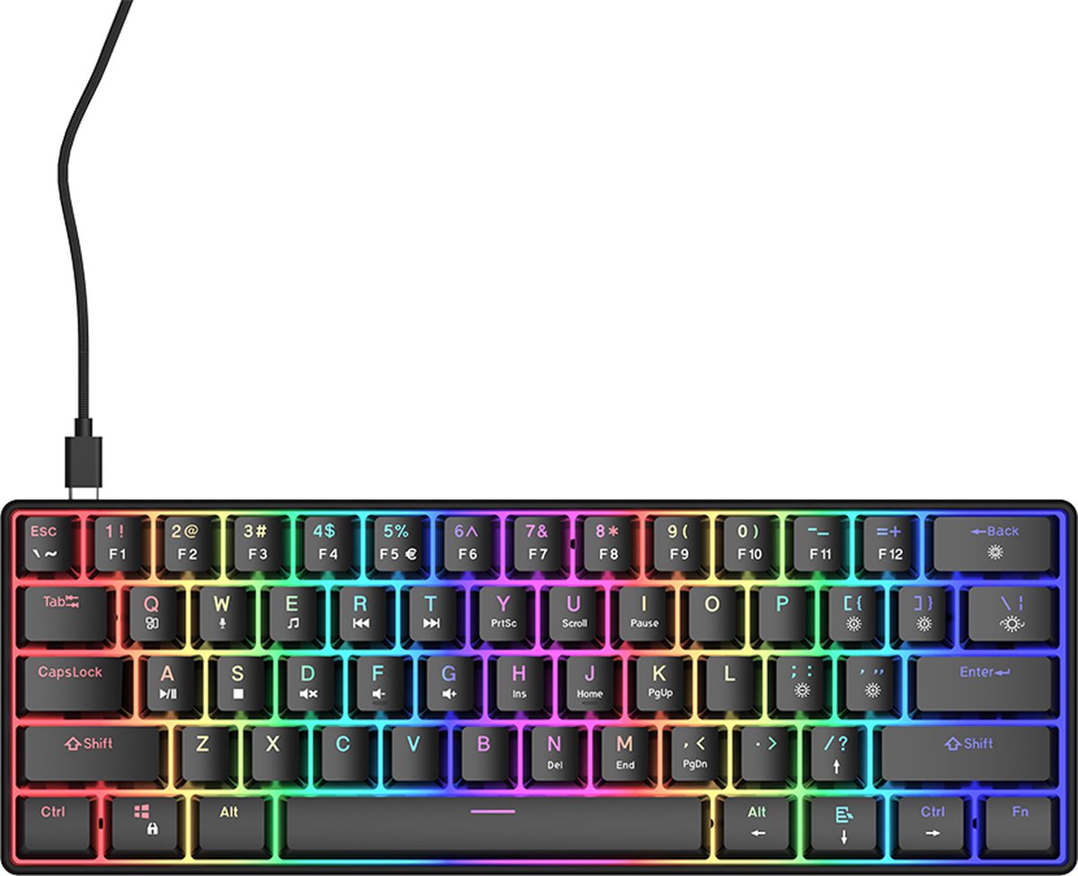 Kies voor het San Jose 60% Gaming Toetsenbord en geniet van een compacte, stijlvolle en krachtige game-ervaring, zonder in te leveren op prestaties of comfort!