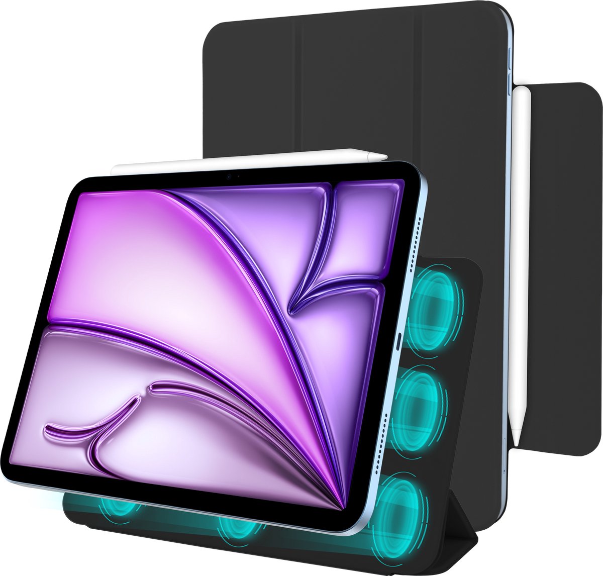 Sterke magneten zorgen voor een naadloze integratie met je iPad of device, houden de tablet stevig op zijn plaats en zorgen ervoor dat je Apple Pencil altijd veilig vast zit.