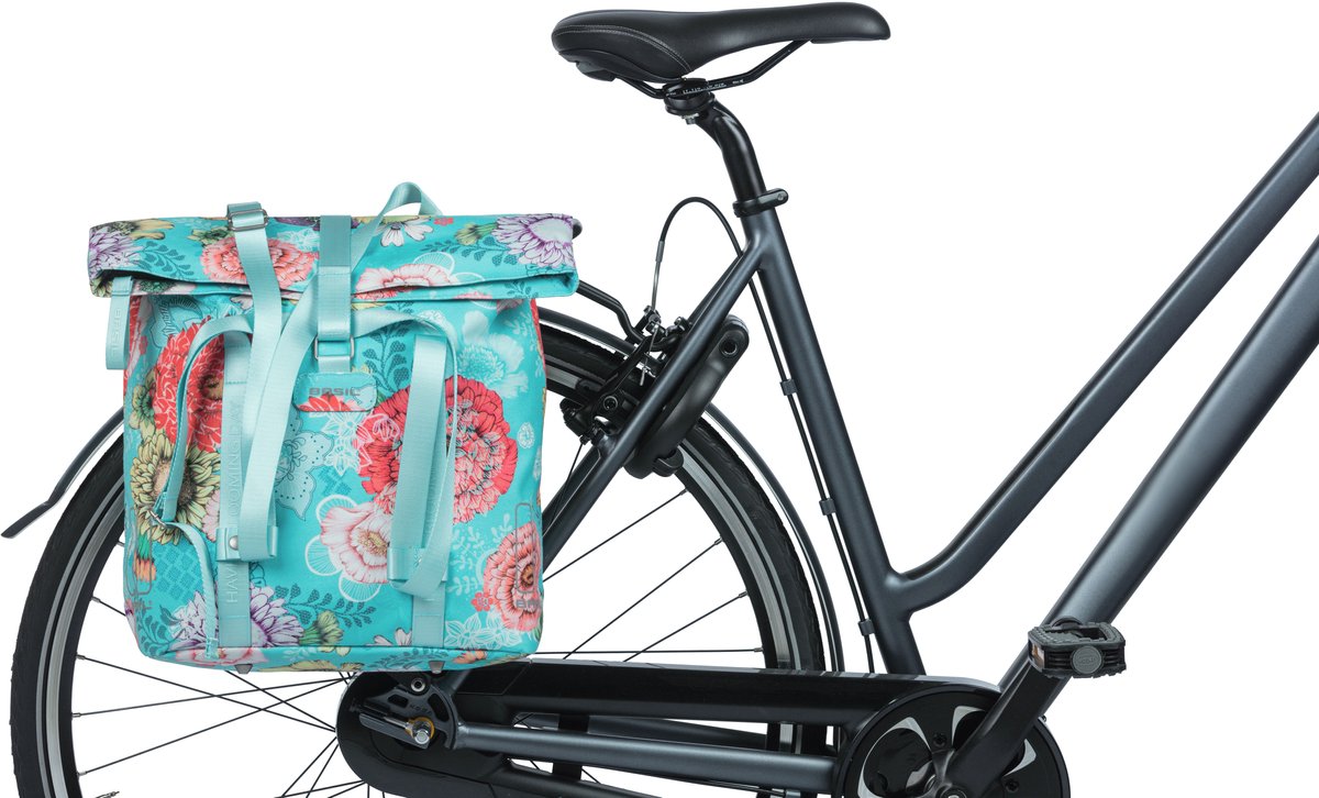 De Basil Bloom Field is een vrolijke fietsshopper in een frisse blauwe kleur en hippe bloemenprint. De trendy bloemenprint is handgeschilderd. En wist je dat de tas gemaakt is van gerecycled PET plastic? De duurzame fietstas komt bij allerlei doeleinden goed van pas. Zo heeft de shopper bijvoorbeeld een gepolsterd laptopvak voor je laptop of tablet.