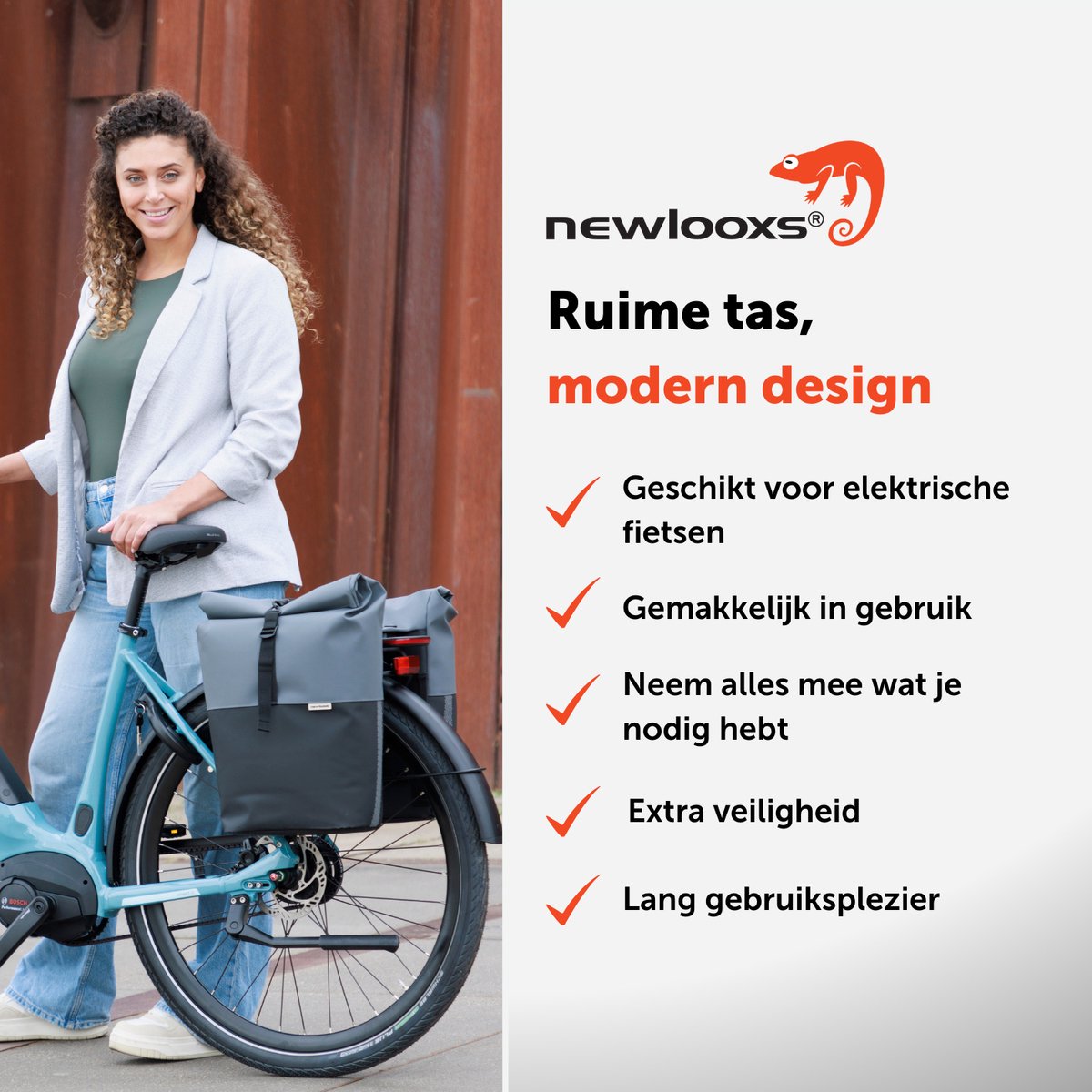 New Looxs Dubbele fietstas Nyborg 34L Light Grey/Black