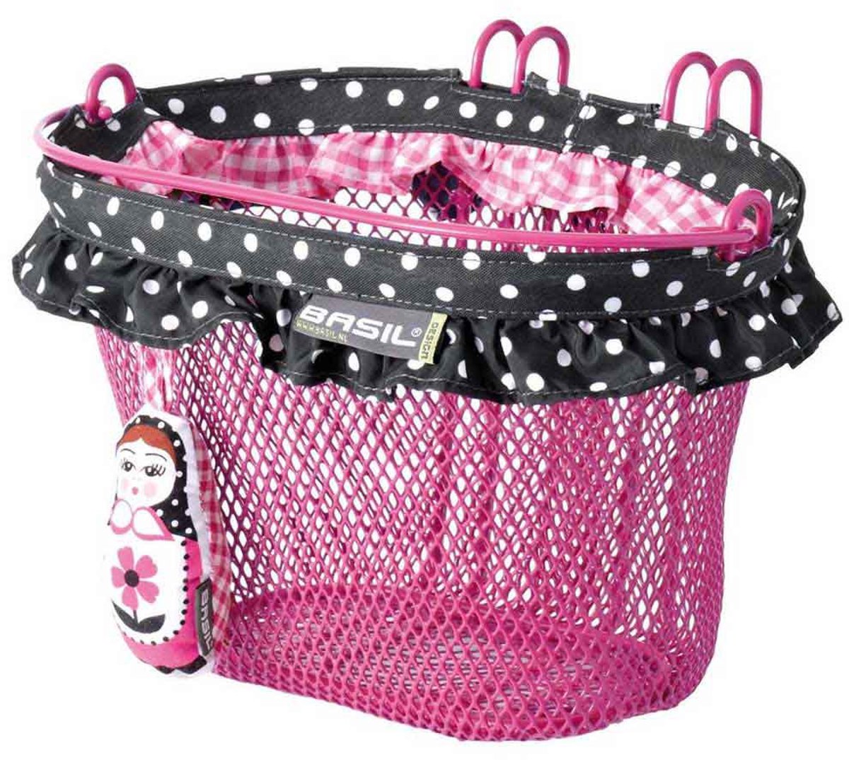 Met de aankoop van een roze Basil Jasmin Baboushka doe jij je dochter een groot plezier. Deze mand van fijnmazig staal is ideaal voor het vervoeren van boodschappen of haar pop en knuffels. Dankzij de roze kleur valt de mand op en is hij de perfecte manier voor het pimpen van een meisjesfiets. De 12-20 inch kinderfietsmand heeft een kleurrijke versierrand en dus is elke fietsrit een feestje. Dankzij de veilige dubbel uitgevoerde stuurhaken, bevestig je de mand eenvoudig voorop een kinderfiets. Daarnaast beschikt de vrolijke mand over een hengsel, dus je dochter neemt haar fietsmand gemakkelijk overal mee naartoe. Is je dochter binnenkort jarig en beschikt ze al over een meisjesfiets? Geef je dochter deze vrolijke roze fietsmand cadeau en laat haar volop genieten van elke fietsrit. Zoek je voor jezelf ook Basil fietsaccessoires zoals een fietsmand of fietstassen voor het vervoeren van boodschappen of je regenpak? Bekijk het overige Basil aanbod elders op de site en pimp je fiets met accessoires en kleuren conform jouw smaak. Eigenschappen: De Basil Jasmin Baboushka kinderfietsmand is van fijnmazig staal en beschikt over een kleurrijke versierrand. De 12-20 inch mand is voorzien van dubbele stuurhaken en je klikt hem eenvoudig voorop een kinderfiets. De mand is daarnaast eenvoudig afneembaar. De mand is voorzien van een hengsel, handig als je dochter meegaat met boodschappen doen! De mand wordt geleverd inclusief gratis Baboushka hanger. Kortom, een musthave voor elke prinses die graag op haar roze fiets stapt!