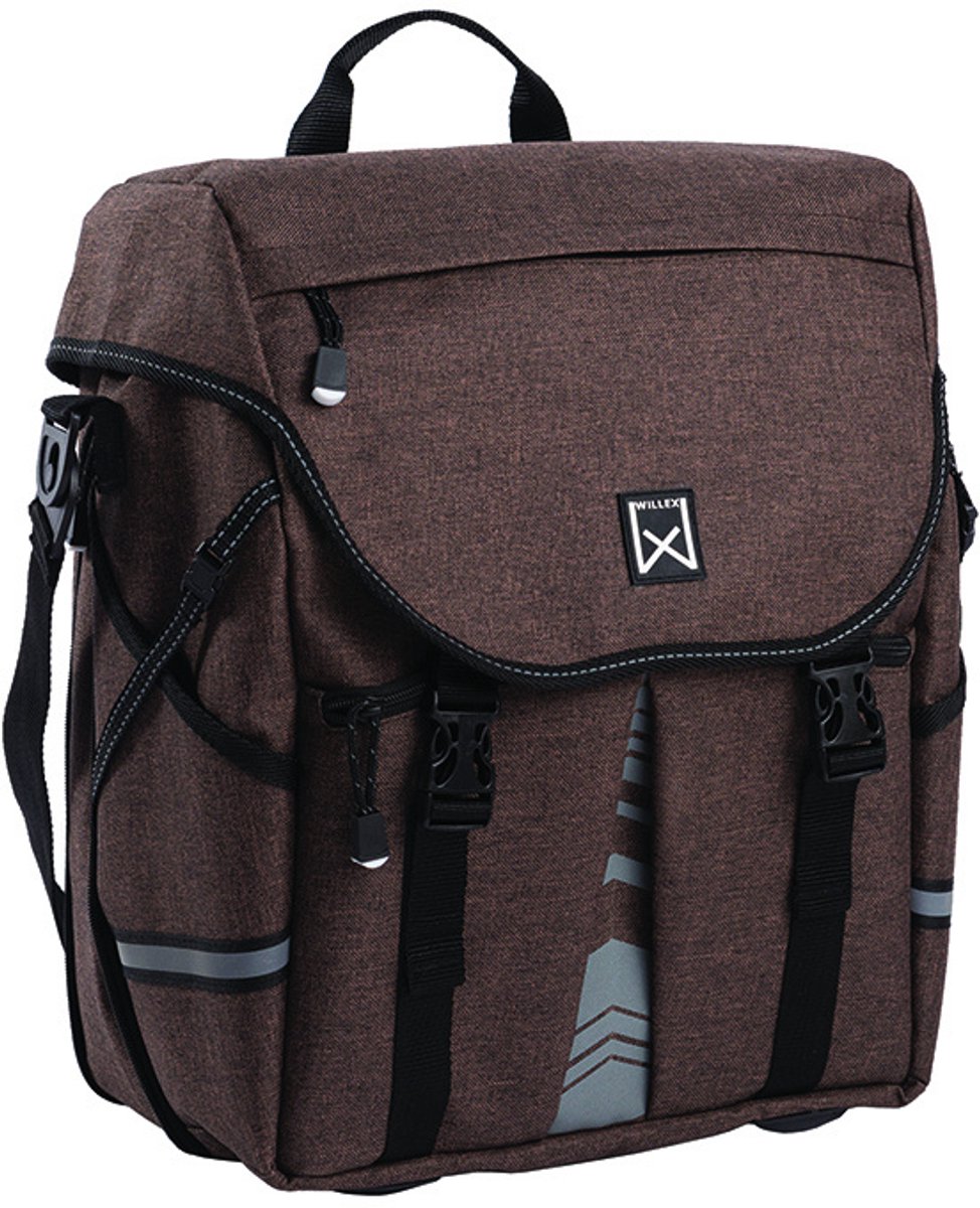 Compacte dubbele tas, aan beide zijden vergrootbaar met extra rits, Waterdicht en waterafstotend polyester, Gepatenteerde Willex® klemhaken voor stabiele bevestiging op bagagedrager lees meer over dit product