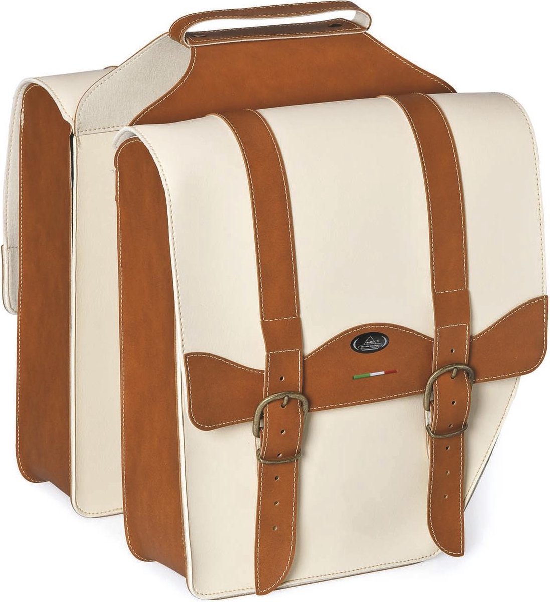 Selle Monte Grappa is een Italiaans bedrijf wat is opgericht in 1970. Sinds 1990 houden ze zich bezig met het produceren van handgemaakte, voornamelijk lederen, fietsaccessoires. Alle producten van Selle Selle Monte Grappa zijn “100% made in Italy”. De dubbele Fietstas van Selle Monte Grappa uit de Cruiser serie heeft een inhoud van 17 Liter en heeft een mooi, vintage design. Beide zijden van de tas worden afgesloten door middel van 2 riemen met een gesp. De voorzijde van de tas loopt aan de onderkant schuin af. De dubbele Fietstassen uit de Cruiser serie zijn gemaakt van Synthetisch leer.