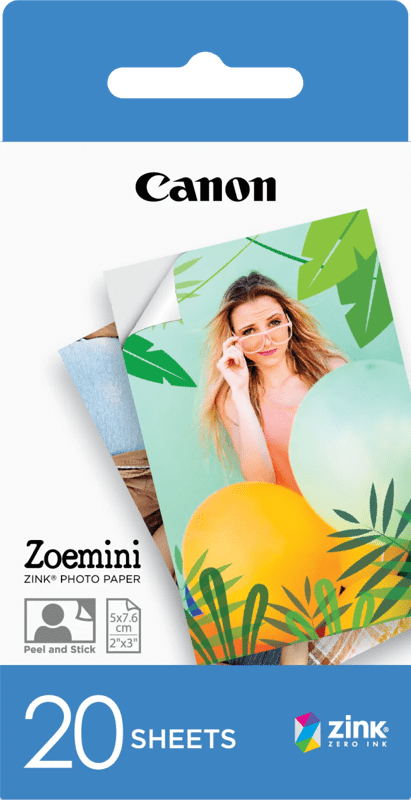 Canon ZINK zelfklevend fotopapier voor je Zoemini - 20 sheets Transformeer foto's van je mobiele telefoon en tablet in waardevolle herinneringen. Dankzij de innovatieve ZINK™-technologie krijg je direct vlekvrije foto's die water- en scheurbestendig zijn, zonder inkt en zonder gedoe. Ideaal om mee te printen wanneer je onderweg bent. Je kunt je foto's bijna overal laten zien. Verwijder de achterkant en plak je foto op je telef... lees meer over dit product
