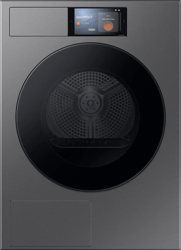 Door voor deze Bespoke AI Home Droger 9000-serie DV90F09F4SU3 warmtepompdroger van Samsung te kiezen, haal je een superefficiënt, hoogwaardig apparaat in huis. Hij is uitgerust met een Inverter-motor die voor efficiëntie, duurzaamheid en een stille werking garant staat waardoor hij een A energie-efficiëntieklasse heeft. Dankzij de gegalvaniseerd trommel met een capaciteit van 9 kg voorzien van speciaal ontworpen peddels zorgt hij goed voor je kleding door het wasgoed een golvende beweging te laten maken. Met de 19 beschikbare droogprogramma's kan je al je kleren op de best mogelijke manier drogen. Deze donker grijze wasdroger met zijn zwarte voorlaaddeur heeft standaardafmetingen en is gemakkelijk vrijstaand in je wasruimte te installeren. Hij is eenvoudig te bedienen dankzij de intuïtieve aanraakgevoelig bedieningspaneel of met de SmatThings-app.