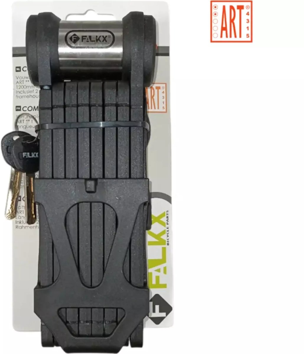 Zoekwoorden: FALKX vouwslot, fietsbeveiliging, ART-certificering, fietsslot, elektrische fiets slot