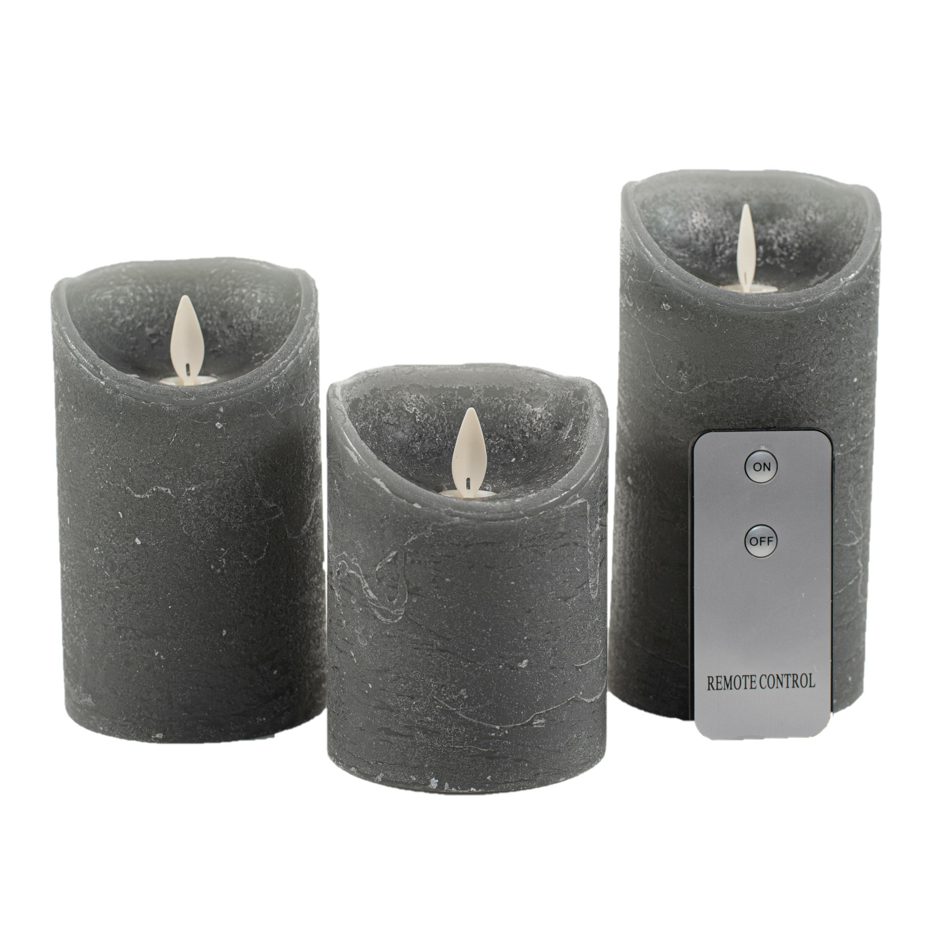 Anna's Collection 3Pcs Grey Rustic Wax Candle Moving Flame With Remote Co Anna's Collection - Annas collection - Grijs