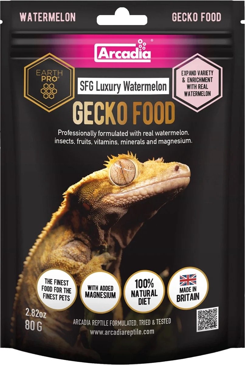 Wat maakt de watermeloensmaak uniek voor wimpergekko's?Wimpergekko’s hebben van nature een voorkeur voor fruit en zoete smaken, waardoor de watermeloensmaak van de Arcadia Stickyfood Gold Luxe perfect aansluit bij hun dieet. Deze unieke smaak zorgt ervoor dat uw gekko met plezier eet en tegelijkertijd de nodige voedingsstoffen binnenkrijgt. Watermeloen bevat natuurlijke suikers die energie leveren en een aantrekkelijke geur die reptielen stimuleert om te eten. Met deze voeding biedt u uw wimpergekko een smakelijke en gezonde maaltijd.
