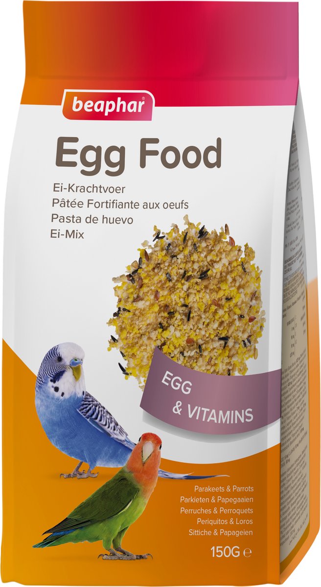 Het Beaphar Ei-Krachtvoer Parkieten/Papegaaien 150 gr aanvullend diervoeder voor parkieten en papegaaien, dat vitaminen, mineralen en sporenelementen bevat. Eivoer is een belangrijke aanvulling op het zaadmengsel voor de vogel. Beaphar Ei-krachtvoer bevat vitaminen, mineralen en sporenelementen die essentieel zijn voor kweek, groei en rui. Met overheerlijke geur en smaak, voor een goede acceptatie.