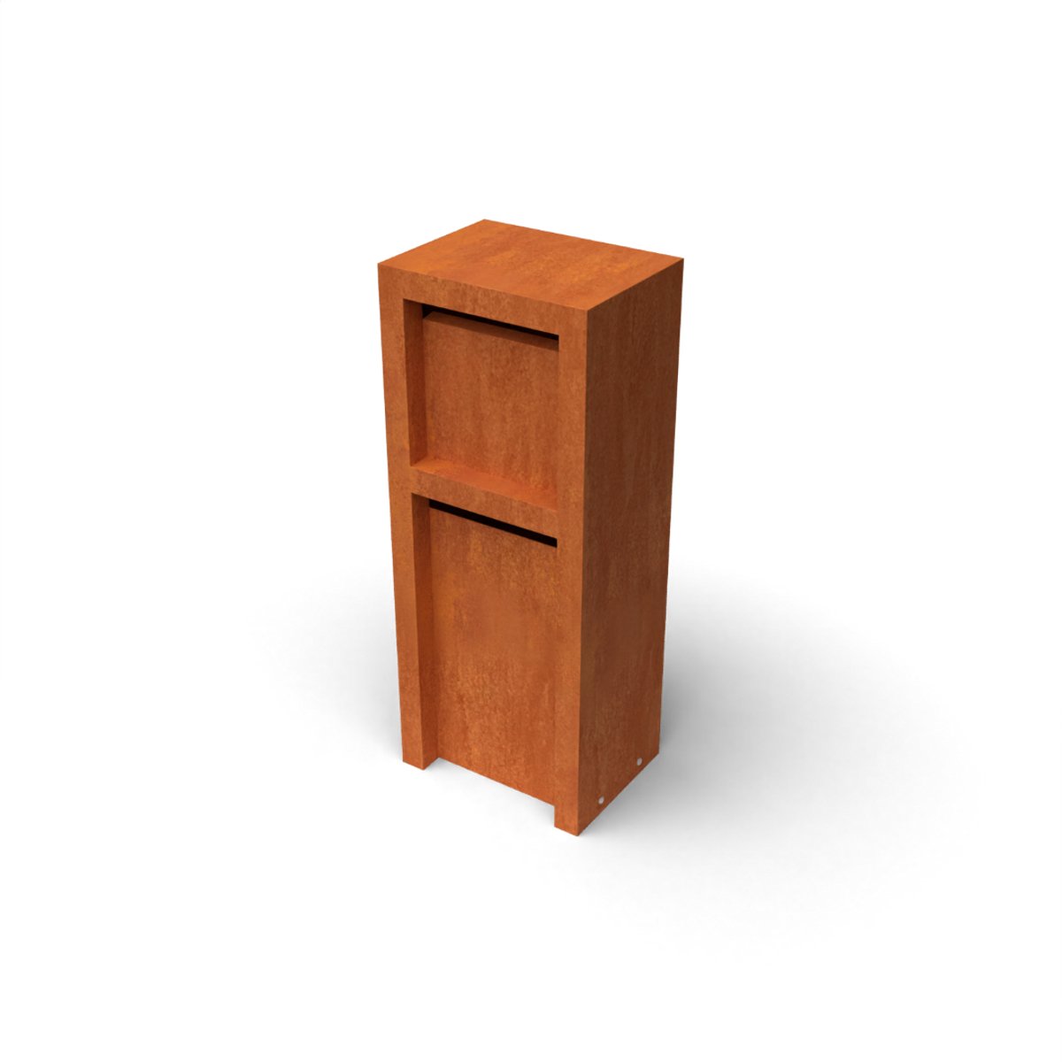 Brievenbus Litru Duo Cortenstaal met 2 post compartimenten - 400x300x1000mm (LxBxH). Materiaaldikte 2mm. Inclusief 2 sleutels per brievenbus. Bevestigingsmateriaal niet inbegrepen.