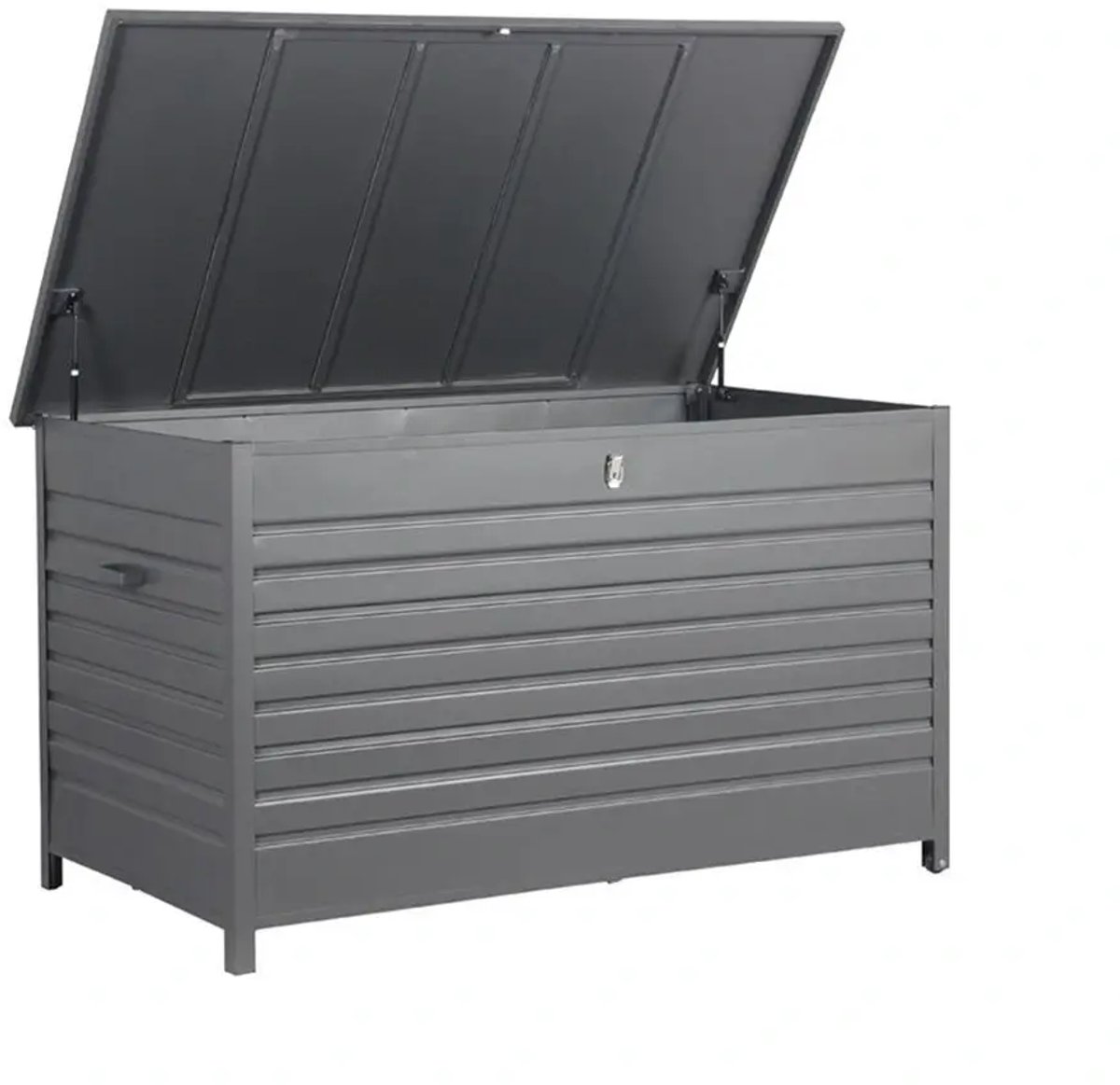 Het deksel van de box opent soepel dankzij de geïntegreerde gasveer, zodat je de klep moeiteloos kunt openen en sluiten. Dit maakt het opbergen van kussens, hoezen of tuinaccessoires snel en gemakkelijk.