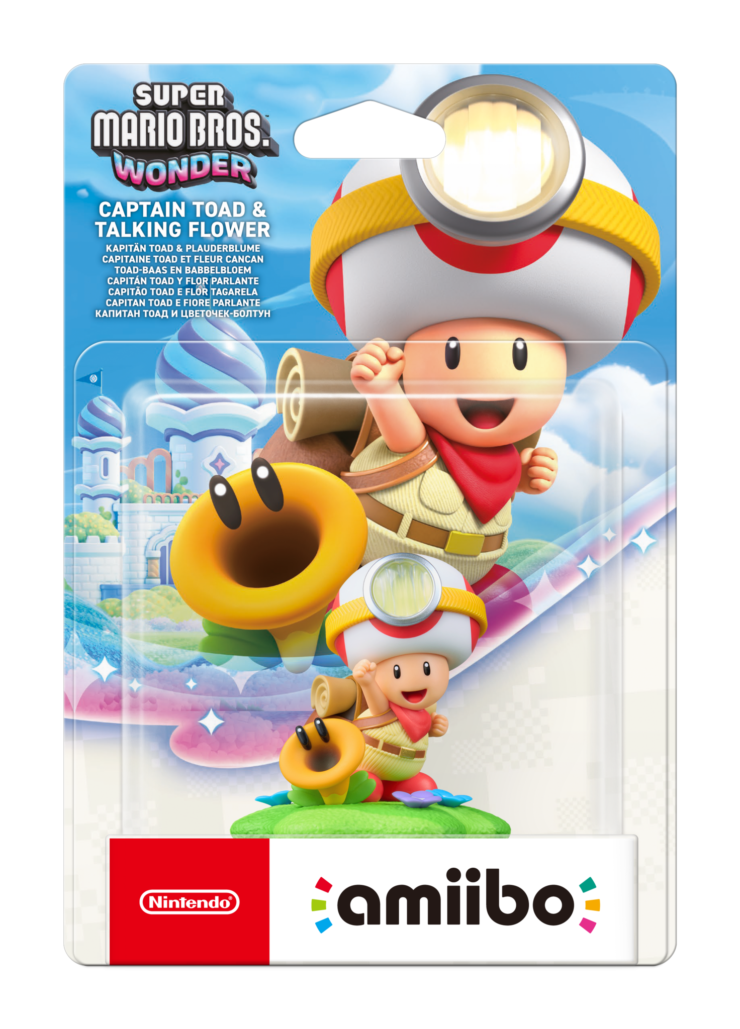 In de games Super Mario Bros. Wonder en Super Mario Bros. Wonder – Nintendo Switch 2 Edition + Meetup in Bellabel Park kun je met de Captain Toad & Talking Flower amiibo-figuur handige power-ups krijgen tijdens het spelen.