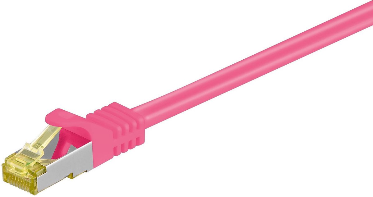 S/FTP netwerkkabel roze - CAT7Deze dubbel afgeschermde S/FTP CAT7 Gigabit netwerkkabel kunt u gebruiken om een computer, notebook, switch of ander apparaat te verbinden met een modem of router. De kabel is voorzien van een snagless plug en de volkoperen getwiste aders zijn 'recht' aangesloten (straight). De mantel is halogeenvrij (LSZH).Kenmerken:- CAT7: geschikt voor Gigabit snelheden (10GBase-T)- maximale bandbreedte: 600 MH... lees meer over dit product