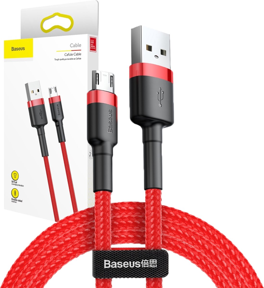 Set bevat: 1 x Baseus Cafule-kabel nylon kabel USB / micro-USB-kabel QC3.0 2.4A 1M rood