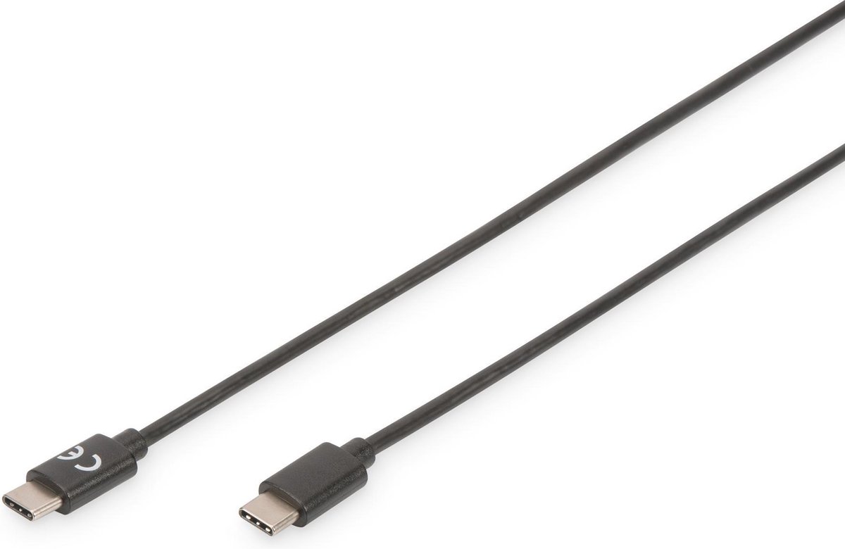 Digitus USB-kabel USB 2.0 USB-C stekker, USB-C stekker 1.80 m Zwart Rond, Stekker past op beide manieren, Afgeschermd (
