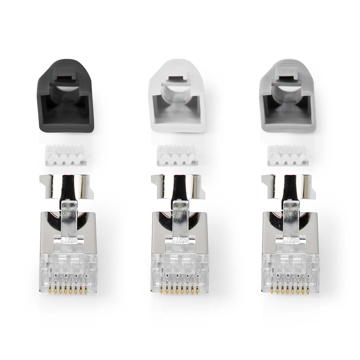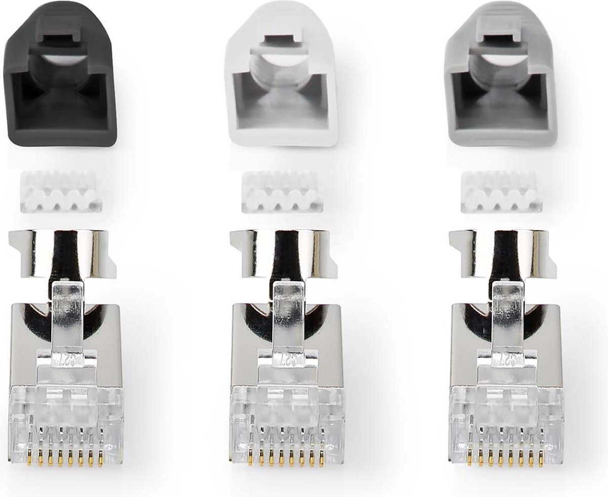 Bevestig deze netwerkconnector op een CAT7 FTP-netwerkkabel om je eigen maatwerknetwerkkabel te maken. De trekontlasting beschermt de kabel tegen breuken veroorzaakt door buigen.