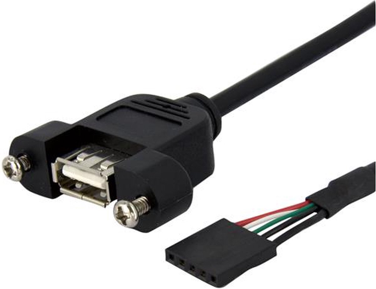 Deze 30 cm lange USB naar Inbouwpaneel USB-kabel is aan het ene uiteinde voorzien van een 5-pins moederbordaansluiting en aan het andere uiteinde van een (vrouwelijke) USB-A-poort (inbouwpaneel) voor het eenvoudig aansluiten van een USB 2.0-poort in de vorm van een inbouwpaneel.
